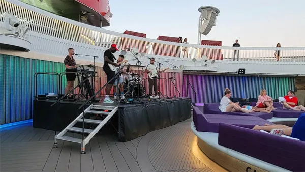 You may be ready for a deck party at sailaway, and this is another area where Virgin Voyages does things in a different way that came as a pleasant surprise. Instead of a DJ or calypso band by the pool, on our sailings we enjoyed a live funk band while sipping sparkling wine. What’s better? For the duration of the party, sparkling wine is complimentary and when you finish a glass, you are quickly brought another one. As a bonus, Scarlet Lady’s departure happens a little later than most, which means sailors either get to see the sunset over the horizon, or the beautifully lit Miami skyline at night.
