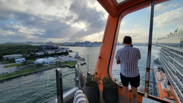 I did a quick live broadcast on our Facebook page as we left and chatted with some friendly folks. One of the viewers was our friend Kym, who is traveling with our group and then joined us in person. Everyone onboard having internet access as part of Celebrity’s Always Included fares does make meet-ups easier. As we departed, sipping sparkling wine with friends, I was reminded of being in this very spot on Celebrity Edge back in June, on the first cruise to leave the US since the pause of service - the most emotional sail-away I’ve ever experienced.