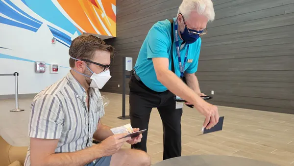 We’re not early risers, but we wanted to arrive early today to check out The Retreat embarkation lounge. The Retreat is Celebrity’s suite experience that is so much more than nice accommodations - check out our video all about The Retreat on Celebrity here. Terminal 25 at Port Everglades (in Ft Lauderdale) is a bespoke facility for Celebrity, and it really matches the feel of the ship. Upon our arrival, we went to a special line for suite guests, went through separate security, and then had our check-in completed while comfortably seated in a lounge.