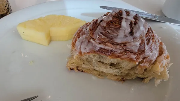 Sitting beside a large window, I enjoyed a custom omelet, espresso, and finally a cinnamon bun. I don’t usually go for cinnamon buns on ships, but this was fantastic. Warm, soft, and not overly-iced.