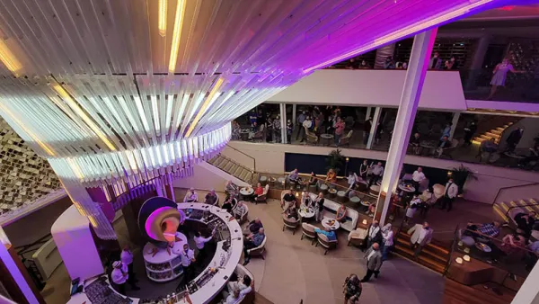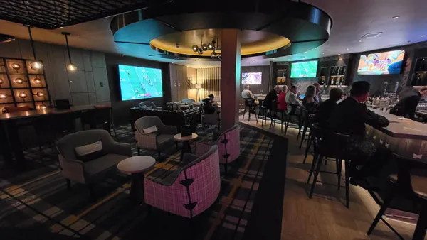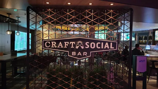 On Celebrity Edge, this is the Casino Bar, and while Craft Social still services the casino on this ship, the passthrough to the casino is closed, in favor of a more intimate environment and a large screen TV (in addition to other TVs).