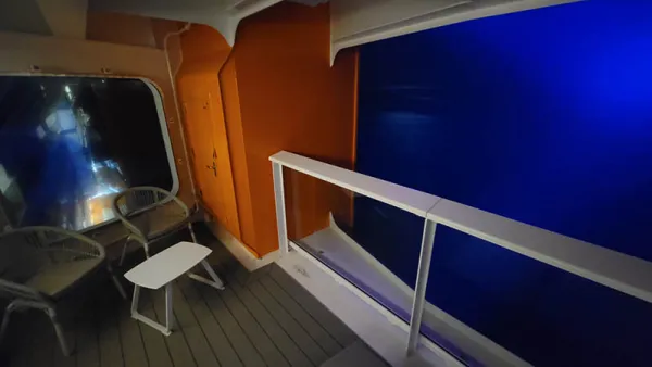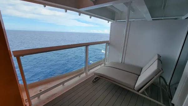 Sky Suites on Edge series are the most economical suites, but they’re absolutely lovely. They feature a double-faucet trough sink, separate vanity in the bathroom, loads of storage, an especially spacious balcony, and in some categories, a window above the sinks which allow you enjoy an ocean view while washing up. This particular Sky Suite is a bit different, as it’s located at the end of the Magic Carpet track.