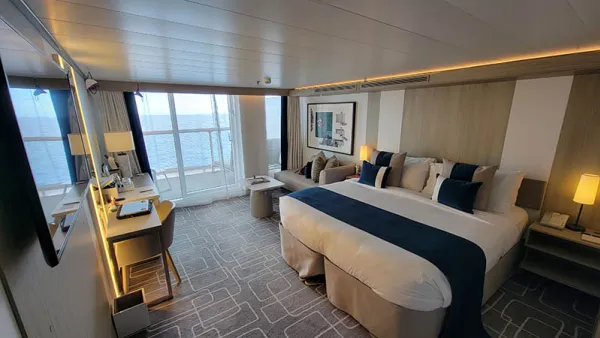 I realized I’ve not yet shared pics of our room, so I’ll share a bit here, but more later, perhaps in a video. We’re in a Sky Suite, which we bid for. This means we originally booked another room, and were given the opportunity to bid for the chance to be upgraded - a chance we fortunately got.