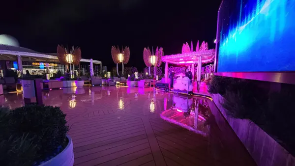 - Outdoor Events - Given current concerns, I was eager to see if Celebrity might move more events outdoors, like we saw on some other cruises recently. I've not noticed this, though there was a dancing-under-the-stars-type party last night at the Rooftop Garden (why haven't we spent time there yet this cruise?). Unfortunately, we seemed to sail through a short but very wet rain storm just as it was happening, so the event was cut short. I stopped by just as they were mopping up.