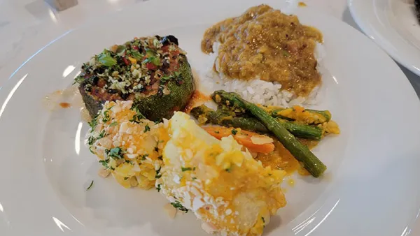 For lunch, we joined friends from our group and went to Oceanview Cafe, the onboard buffet venue. I was absolutely blown away by the quality and breadth of options. It seemed Celebrity brought their A-game to this restaurant today. By coincidence, until dessert, I ended up having a fully vegan meal. Garbanzo-stuffed zucchini, vegetables au gratin, and dal were the high-points. The dal was perhaps the spiciest thing I’d had from a cruise ship buffet - and I was thrilled with it.