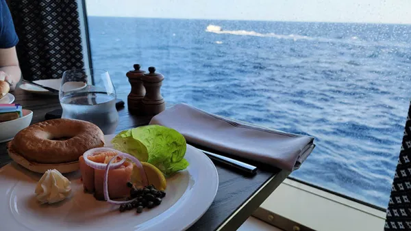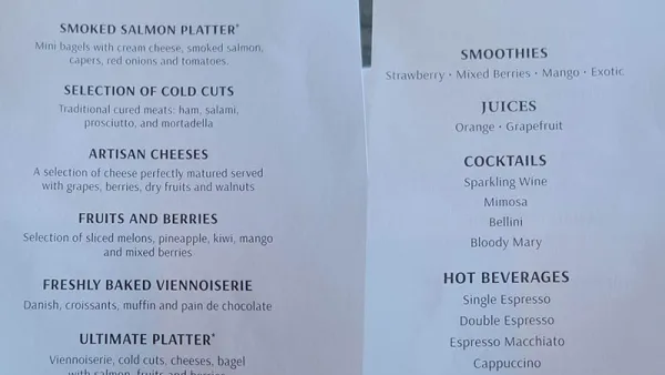Celebrity has a light breakfast for members (Elite level and higher) of the Captain’s Club, their loyalty program. On Edge series ships it’s held at the Le Grand Bistro, a French restaurant in the Grand Plaza.