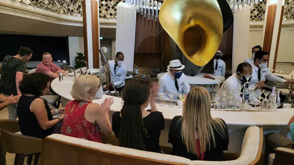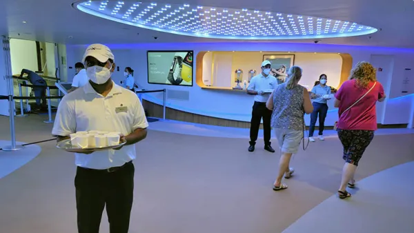 Eventually we returned back to Apex, and found immediate reprieve from the heat as security and boarding procedures were in the lovely Destination Gateway, with space, and friendly staff handing out infused waters and cold towels. This well-thought out space is part of Celebrity's effort to make the end-to-end cruise experience comfortable, so you don't have to wait in crowded halls for security, sweat on the gangway, or just in general, spend time in less-than-beautiful parts of the ship.
