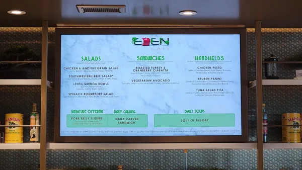 Eden Cafe offers sandwiches, soup, salads, and a nice dessert selection, along with specialty coffees. Food is complimentary, generally pretty good. I usually enjoy eating here for the outdoor seating as well as the food, but the rain kept us dining in Eden watching the rain pelt the panoramic windows until the weather cleared so we could go ashore.