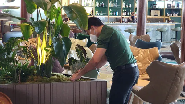 I headed into Eden to wait out the rain, much like yesterday. It’s not a bad place to be, ever. I managed to catch a glimpse of the gentleman who cares for the live plants. He went one by one with a large water canister on wheels, and not only watered, but adjusted how things were potted, and made sure they looked healthy and well. I asked him about the mossy-looking plants lining parts of the walls, and he said those don’t actually need to be watered, they get enough from the air.