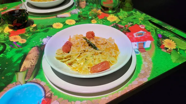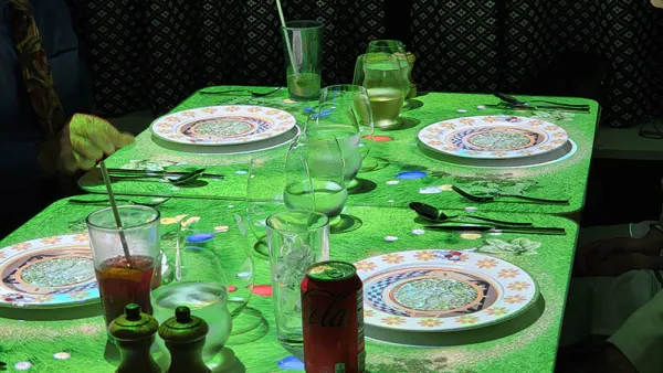 Guests enjoy a prix fixe (but customizable) menu of four courses while watching a show projected in vivid colors across the table and even your plate. A young chef becomes engaged to his spouse, raises a family, and sees the seasons, and seasons of life, change, while preparing and virtually plating your meals.