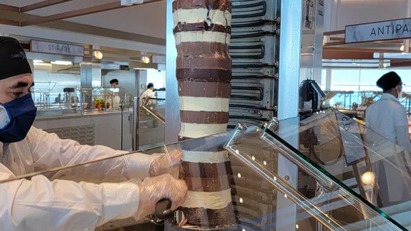 Crepe Station!? The Oceanview Cafe today had a crepe station where you could get custom made crepes, including shaved chocolate on the top. They have white, dark, and milk chocolate on a spit which they then shave. Very cool!