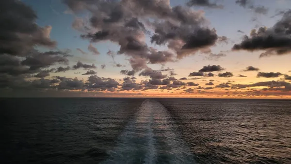 Before dinner we headed to the Sunset Bar for a quick drink with friends, and as we were sailing east, this aft-bar was very aptly named for today. We got to see amazing colors over the ship's wake.