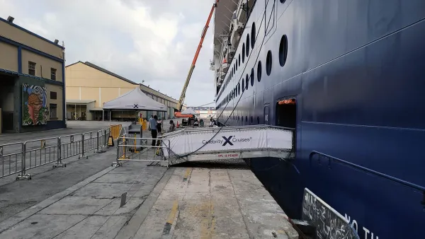 Departing at 1pm, our excursion to the beach was still a big question-mark, as we didn’t really know what things would be like given local COVID protocols. The tour met at the theater, guests were given stickers with their bus number (like on any line), and told we’d need to wear masks as soon as we step off the ship. I broke out one of the Celebrity masks we were given then we walked down to deck one to get off the ship: the first time stepping foot in a port of call in the Caribbean, since early 2021.