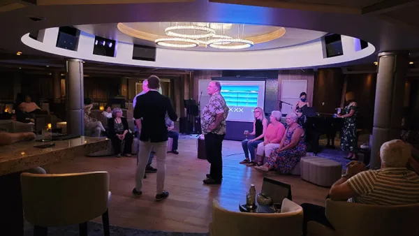 Celebrity has worked so hard to provide a wide variety of onboard events, but the passenger load means they’re often just empty. This wasn’t the case for one event though. After showering I stopped by the Rendezvous Lounge, which is large multi-purpose space that looks, in my opinion, 100x better since Celebrity Revolution.