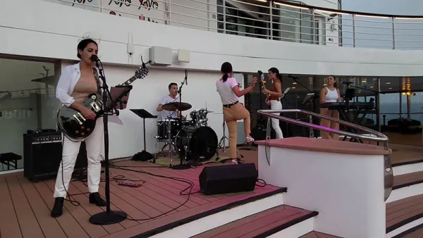 Despite the slim attendance on deck (more may have been there on Facebook than in person), the band Magnifica was on stage and playing like they were in Madison Square Garden. This talented group of folks deserve more of an audience, but I think they were happy to be back onboard with guests either way. Hopefully we can catch them again soon, as they, along with Manilla Soul on Norwegian Sky, stand out as two really great ship house bands.