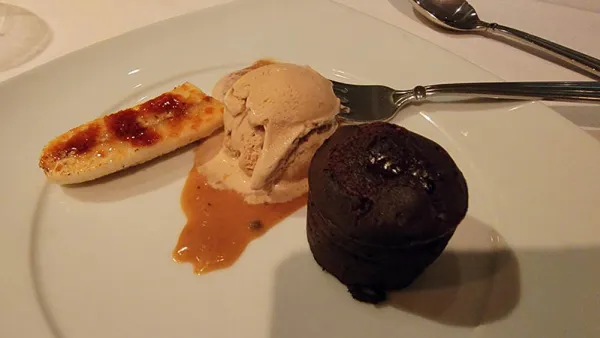 For dinner I enjoyed a tomato and chickpea soup, salad, fried potato masala – all of which were excellent. Of course I don't ever skip dessert, and that was a small chocolate lava cake, with a candied banana, and some ice cream. Delicious. We don’t go main dining rooms as often as we used to, but the last several experiences on Celebrity have been great, and we should do this more. Service was also good, and the sommelier noted, as we chatted, that this was his very first contract. What a wild time to start a career onboard cruise ships!