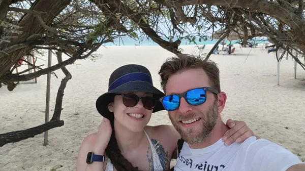 Being the first cruise ship back, and with a small number of guests, there weren’t cabs at the port by the time we disembarked. We walked through a nearly empty terminal, a reminder that as normal as things feel onboard, the other ships in port didn’t have guests on them. We walked across the street to a hotel taxi stand and took a cab to Eagle Beach for $12.