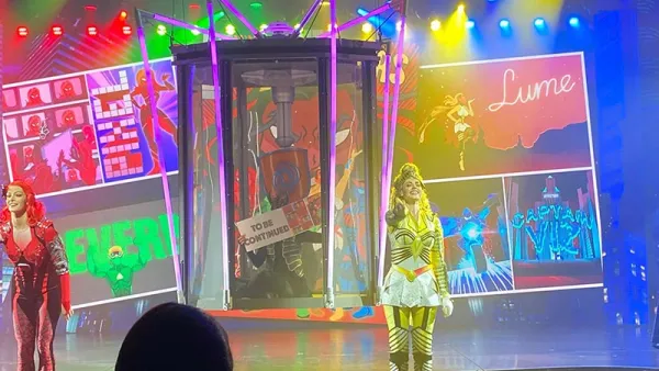 In the past few years, there have been performances in Walt Disney World and elsewhere involving large numbers of small drones, where they change colors and move to create wild patterns in the air. If you've seen this, you don't need me to tell you how surreal of an effect it creates. These shows, however, have always been pulled off outdoors in massive spaces. Even the largest cruise ship theater doesn't seem like a place you could fly multiple drones, but that's exactly what happens in this show.