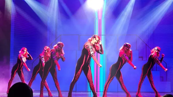 If I was ever in a fight between good and evil, I'm not sure how Pixel could help me in any way, but in this show, the cast and tech team did do an impressive job of cloning her. Really. As she dances around set pieces, some have screens (or projections), where she might stand behind part of a piece, but you see her "digitized" in on the screen, to make here "whole" in front of you. This quickly turns into her dancing in sync with other projected Pixels that look exactly like her. Then, multiple live actors come onto the stage, not only dressed the same, but looking VERY MUCH like the performer playing Pixel. Wearing the same costume is easy, but how do they look exactly alike? Part of this is that their movements were well-choreographed. Another part, I suspect, is a wise decision in who is positioned where, so with features and qualities most like the "real" Pixel are positioned closest to her. Many shows have characters dancing while looking alike, but this was very well executed.