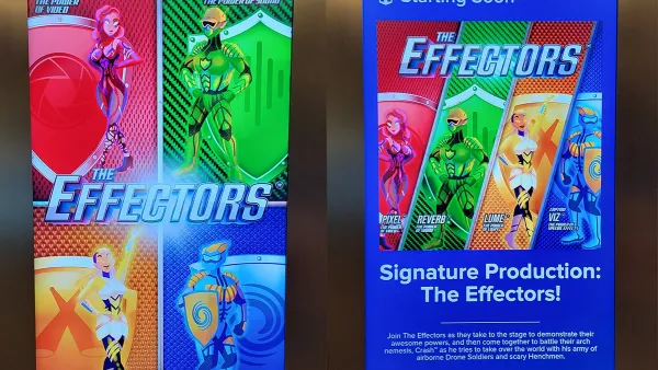 "Some superheroes are known for powers like ultra-fast speed, laser vision and titan-strength — but The Effectors draw their powers from their ability to create. Now, this band of heroes will have to face off against the ruthless Crash™, their arch-nemesis who’s bent on stopping the show and destroying the world. Get ready for an action-packed original spectacular at the Royal Theater — only on [Odyssey] of the Seas®."