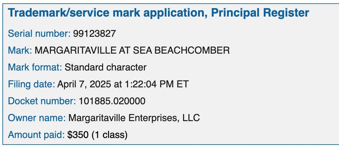 As for the name of their next ship? Just five weeks ahead of this announcement, Margaritaville at Sea filed a trademark for the name Margaritaville at Sea Beachcomber, so that’s where our money is, but if we’re wrong, we’ll apologize when we sail on her.