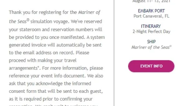 Mariner of the Seas Simulated Voyage (Test Cruise) - Invitation Received