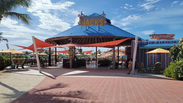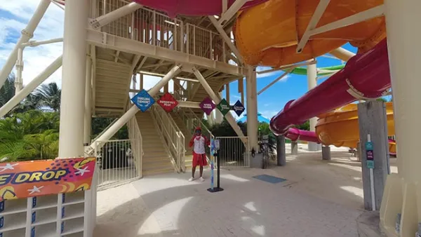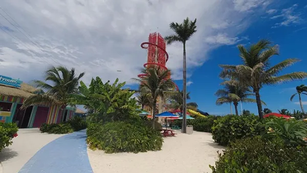 My first thought was we got off the cart was that things looked very well-polished, but a bit too manufactured. Immediately in front of me was a large entertainment space called Captain Jack's, a pirate ship with splash areas for kids, and the entrance to the Thrill Waterpark (with the 135 foot Daredevil's Tower). For a moment, I thought maybe they'd done "too much" to the island and turned it into a theme park of sorts. The brightly-colored areas and plastic facades were cute, but not for me. I didn't want "family themed," but I quickly realized this was just one small part of the experience and the island.