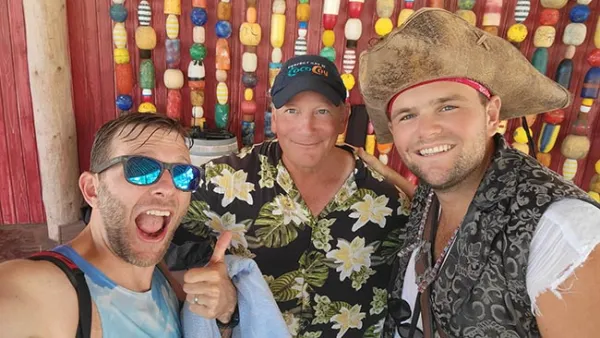 Not far from Chill Island is another stretch of beach near the Coco Beach Club. Here I immediately noticed a floating bar, which many friends had talked about in the past. It's probably about 75 feet from the beach, and depending on the tide, you have to swim or dog paddle for at least a few feet before climbing up onto the wooden structure with a bar in the center, seating on three sides, and plenty of standing room with holes in the railing to serve as cup holders. I liked this arrangement more than I thought I would - though I was hoping to see some stingrays or sharks, which others said are commonly seen from here.