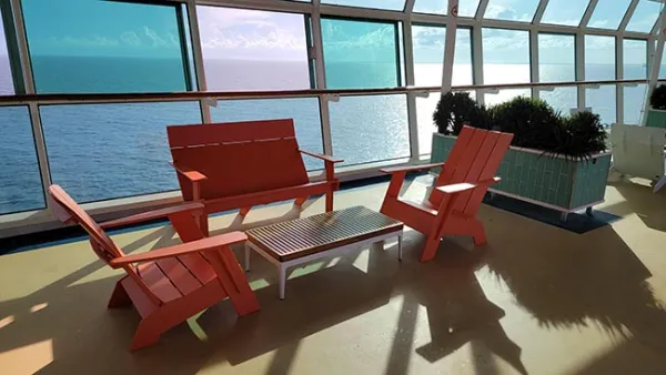 I took a brief stroll on deck, but quickly realized I needed to head far from any non-air conditioned spaces. Passing some chairs on the pool deck, I noticed there is a nice variety in styles of seating, which makes things look a lot classier than the uniform boring deck chairs.