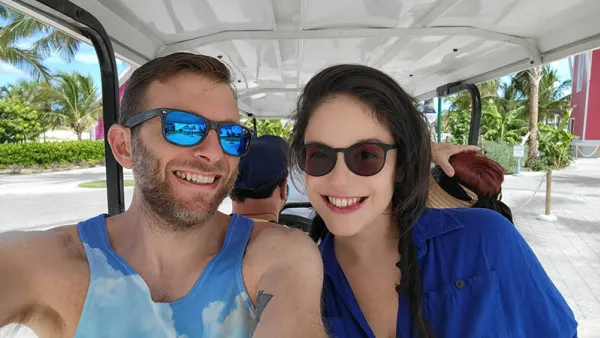 I was determined to see more of the island, but I also needed to drop off my laptop and camera gear, (I was shooting this week's episode of "Billy's Cruise Takes" on the island). I probably would have schlepped it around, but I knew I'd also feel better ducking into the a/c a bit, and cleaning up. Returning to the ship just meant an easy cart ride back and we headed right to our rooms - though through the standard passenger corridors.