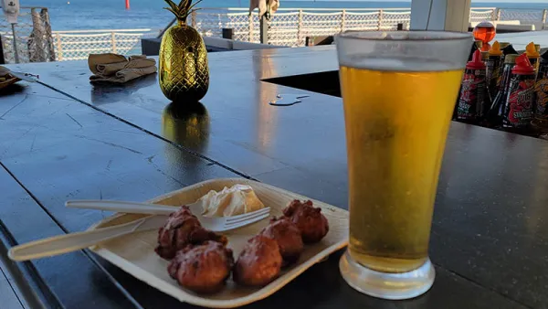 On arrival at Ocean House, the restaurant and bar with beautiful outdoor and indoor seating (indoors only for vaccinated guests), the staff explained when lunch would be available, where restrooms were, and pointed out the adjacent beaches. We scanned QR codes on the table to get the food and drink menus, and I was immediately impressed by the dishes and specialty cocktails offered.