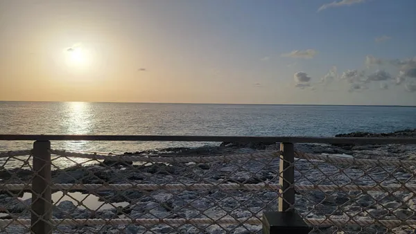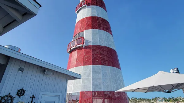 There is a large lighthouse on the island, sitting just forward of the ship, so easily seen from our forward balcony. We wanted to go there to hear the pub singer and check out a different part of the island. It is, according to the staff, a seven minute walk. It was hot, though, and we were told they ran a shuttle. We waited, and waited, and were assured it was coming...until they said it wasn't. This was frustrating, and contrary to the great service we've received both in and out of the suite areas so far. Moments later, someone came up, apologized, and said that while the shuttle had stopped, they'd be happy to give us a ride.