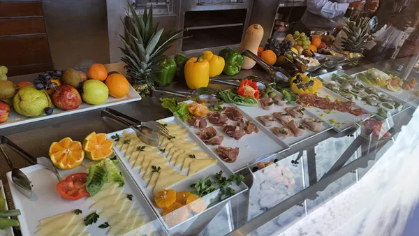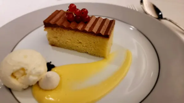 We started our day a bit too late for breakfast in any of the dining rooms, but the buffet by the Yacht Club's pool was still open. There was a selection of cold items, including smoked salmon, pastries, and fruits. Additionally, a chef was there to make eggs in any style, and could also make fresh pancakes, French toast, or waffles. The friendly staff prepared plates for us and brought us espresso. Enjoying the sun before things got too hot, we sat out on deck gazing at the island and both remarked that the omelet I ordered was incredibly good. It wasn't too oily, and the vegetables were fresh.