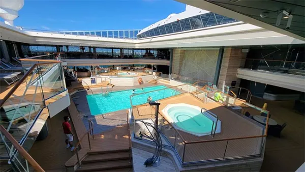 Finally, all the way aft is the Horizon Pool, which has amphitheater seating looking down at the pool and the wake trail. This area is for adults only,