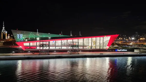 Royal Caribbean's terminal in PortMiami was lit up for the Christmas holiday and looked pretty neat on the way out.