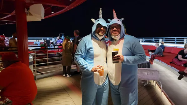Guests wore pyjamas, sometimes “normal” but sometimes amazing, like the gentlemen from Orlando that we met rocking matching unicorn onesies. A very nice touch, like the earlier blankets, was entertainment staff (in PJs, of course) walking around with cookies and milk for guests.