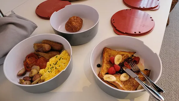 When I did wake up, in part due to the light-leak around the black out curtains, I knew I needed coffee before conquering the ship. Fortunately, before tuning in, I ordered breakfast for the morning. As with my previous experiences with Ship Eats, the food and coffee was delivered on time and hot. I can’t say enough good things about the quality of the food and overall room service experience. We had some eggs, veggies, coffee, and finally tried a berry nutella French toast dish that is certainly way over my calorie threshold, but oh-so-delicious. One thing of note, the breakfast meats are available vegan at the click of a button.