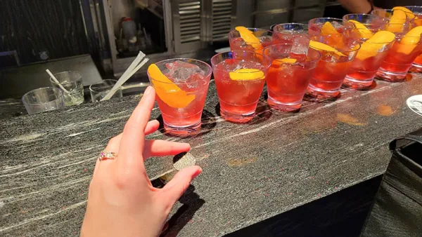 One of the events we signed up for is called a grog walk, more commonly known as a pub crawl. I wasn’t sure what to expect, but thought it’d be a tasting of sorts. I should have known that Virgin would be a spin on this. A common thread on this ship is that things tend to be very social. From seating configurations, to the shape of one of the pools, many things are situated in a way that promotes socialization.