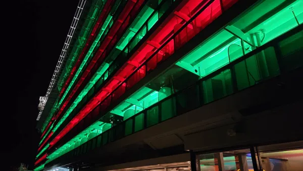 - Guests onboard may not easily notice, but the lights on the balcony (or Sea Terrace, as Virgin calls them), which are usually red, are currently alternating red and green for the holidays!