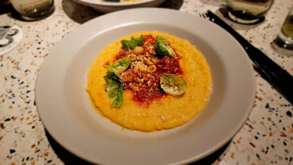 Tonight we dined in an Italian restaurant called Extra Virgin. The menu is easily managed as family style or individual portions. To start, we opted for the crispy artichoke and the ribollita, which was cannellini beans, escarole salsa verde, and country bread. We also ordered gnocchi with hen of the woods mushrooms and a truffle butter sauce, as well as brussel sprouts arrabiata and grilled sea bass.