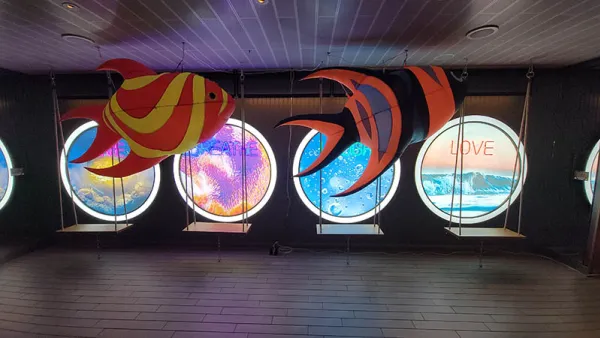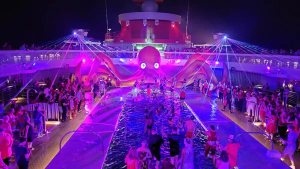 Following dinner we noticed the theme around the ship had really been turned up to eleven. For one, there was a comedically done fake wedding, where the entertainment staff conducted a wedding between two random guests in the mid-ship atrium area...where there was also a massive inflatable sea creature with tentacles. Read that again, it won’t make any more sense later. It was amusing to watch, but I’m not sure I got the point. Anything that guests enjoy is a good thing though. As soon as this was over there were crew and entertainment staff enthusiastically and in very animated ways, encouraging guests to head to the pool deck.
