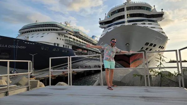 The time seemed to fly by, and eventually it was time to head back to the ship - but we really should arrange another trip to St Maarten so we can enjoy the island’s hospitality for more than a day again. It really feels like home. We did make one stop on the way back, which was to the pharmacy next door. On arrival to the ship this week we had a large bottle of sunscreen open up in a toiletry bag, so we picked up a bottle of rubbing alcohol to help clean up the mess before it’s time to re-pack. Never a dull moment. All ships were still in port, so a silly picture was in order, since I rrarely get to see these vessels.