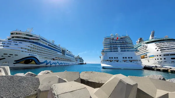 After working the first few hours of the day I packed up my things and walked to deck four to disembark. The past few times we were here, our ship was in the first slip nearest the port shopping area. In fact, when we were here on the first cruise to return in the Caribbean, which left from St Maarten, they just shuttled us right to the ship, skipping the closed outdoor mall. Those first few visits, I couldn’t help but feel terrible for the locals, as businesses were shuttered and it felt like a ghost town. Today however, was quite different, as there were six cruise ships in port and tourists were spread out, eating, drinking, shopping, and taking photos - the whole feeling was very “normal” compared to the last year and a half.