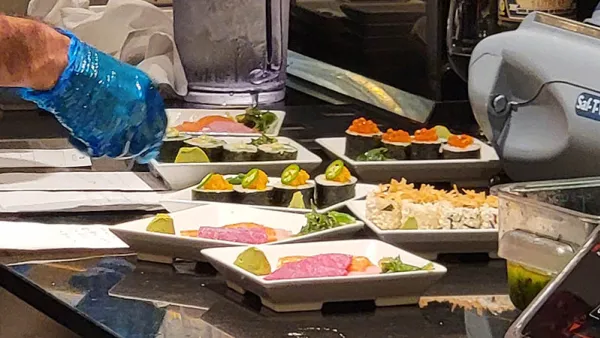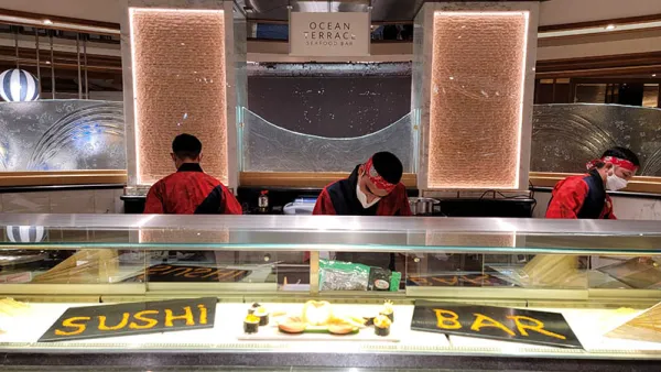 One of the specialty dining options on Sky Princess is a small sushi bar located at the center top of the Piazza (atrium). This is a nice setting that allows guests to enjoy the live music often being played two decks below, take in the ambiance of the main gathering area of the ship, while also feeling like they’re in an intimate space.