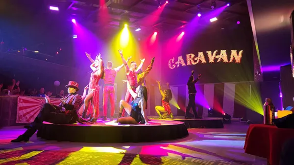 It’s not just Eden that has up-close, small-venue shows - this sometimes happens in The Club, the nightclub onboard. In fact, on Apex, there is a show called Caravan which is performed in The Club, but by the Edenists (Eden performers). This event absolutely packed the house, and except for a handful of people actively drinking, it seemed that mask compliance was high.
