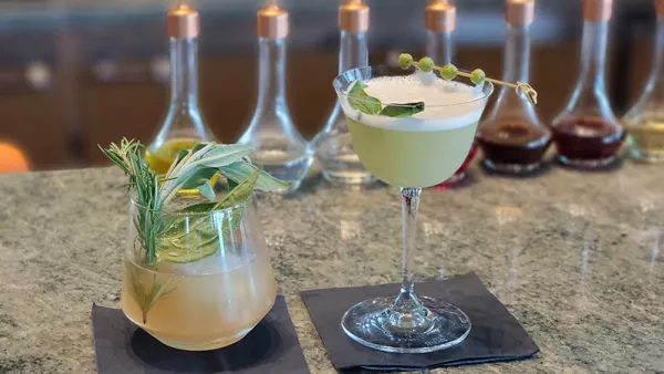 Larissa and I went down there to have a couple of our favorites, Garden and Pea. Garden is a bourbon drink with herbs in the glass that balances things out as the aroma hits you with every sip. The interestingly-named Pea is a gin drink that includes aquafaba, a liquid made from fava beans. Both are good, and while the prices for the signature drinks at Eden are high, each of these are $20), they’re creative, delicious, well presented, and worth the cost to at least try once…though I always manage to work through most of the menu.
