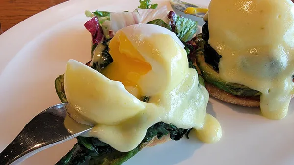 We had had the “egg” in a hold vegan dish, avocado asparagus eggs benedict, and the French toast, along with lots of coffee and a pastry.